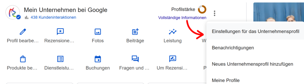 3. Einstellungen für das Unternehmen öffnen: Wählen Sie nun „Einstellungen für das Unternehmensprofil“ aus.